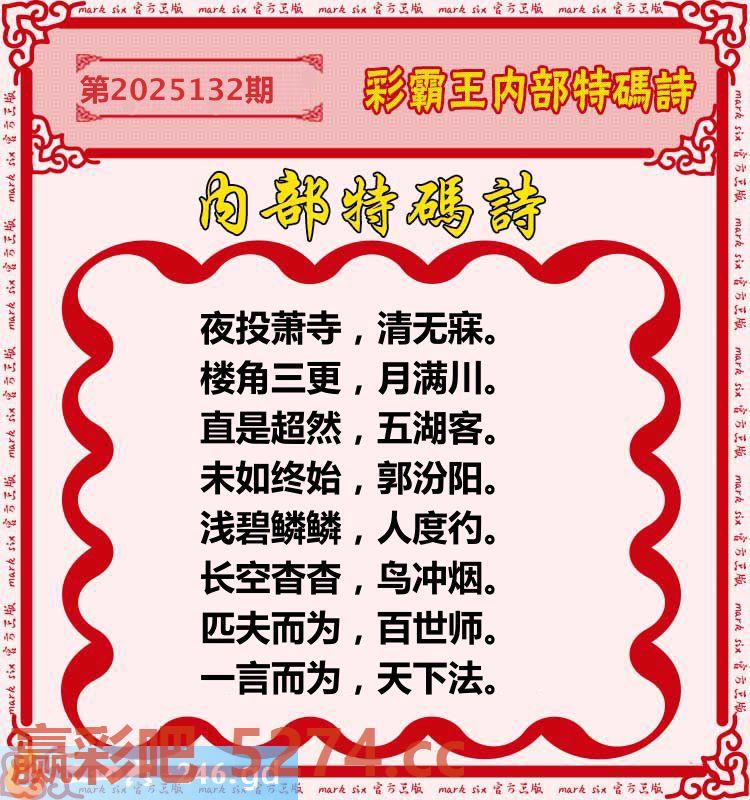 132期:彩霸王内部特码诗