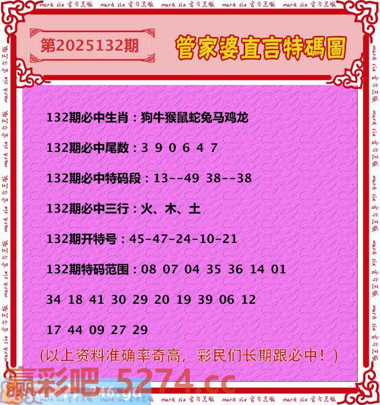 132期:管家婆直言特码圖